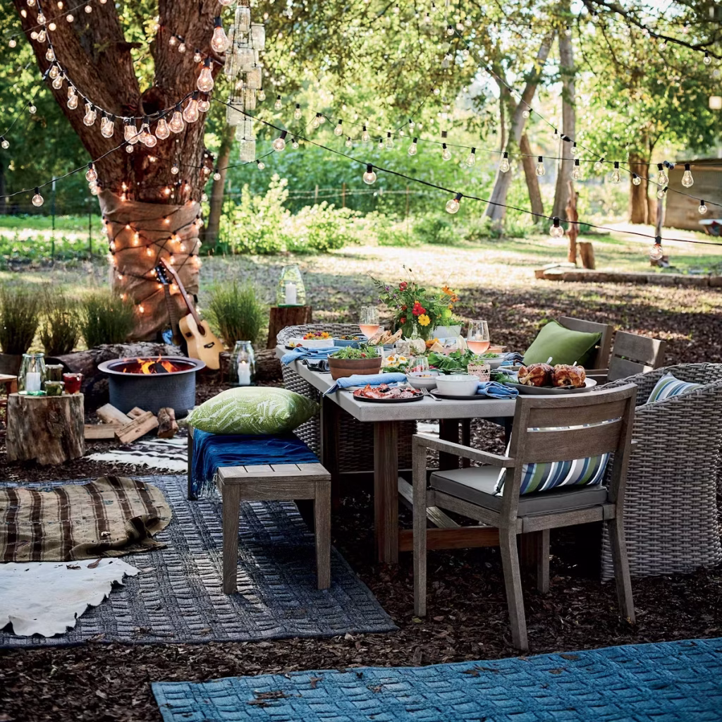 OUTDOOR SPACES THAT STEAL THE SHOW The perfect outdoor moment starts with the Teak Patio Sets, complemented by Weatherproof Cushions and ambient Lanterns. Each piece is crafted to combine durability with style. Add Outdoor Throw Pillows for color and texture, and your deck, patio, or terrace becomes a luxurious extension of your home. Even casual gatherings feel elevated in this space.